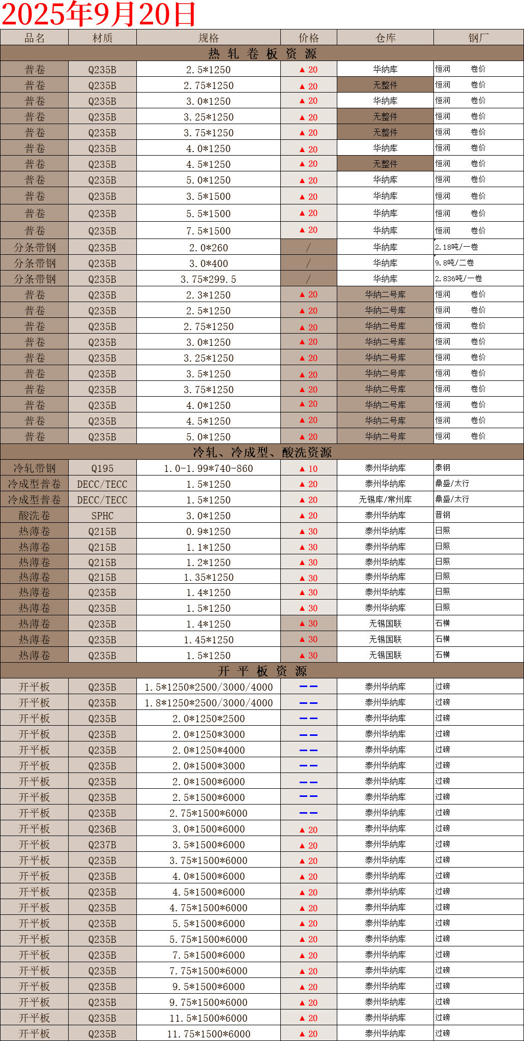 市场变化较快,实际成交价格以电询为准!报价说明 :以上卷板报价均为整件含开价,正常库存开平板出售+50需定开3米以上(包括3米)非整件+60,需定开2-3米非整件+70(包括2米),非整件小于1米-2米+80(包括1米),小于1米另计