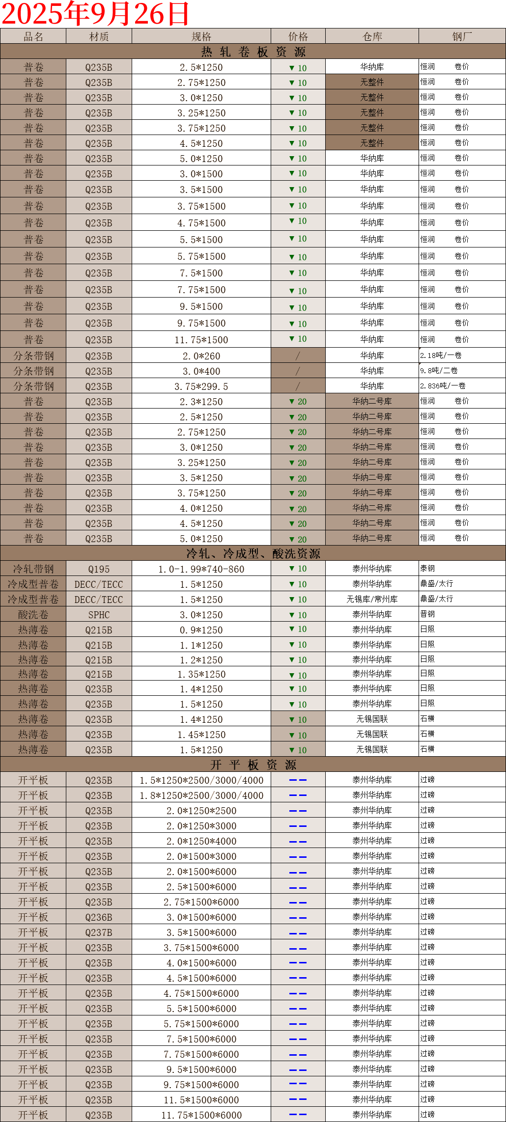 【钢互网报价】2025.9.26 星期五