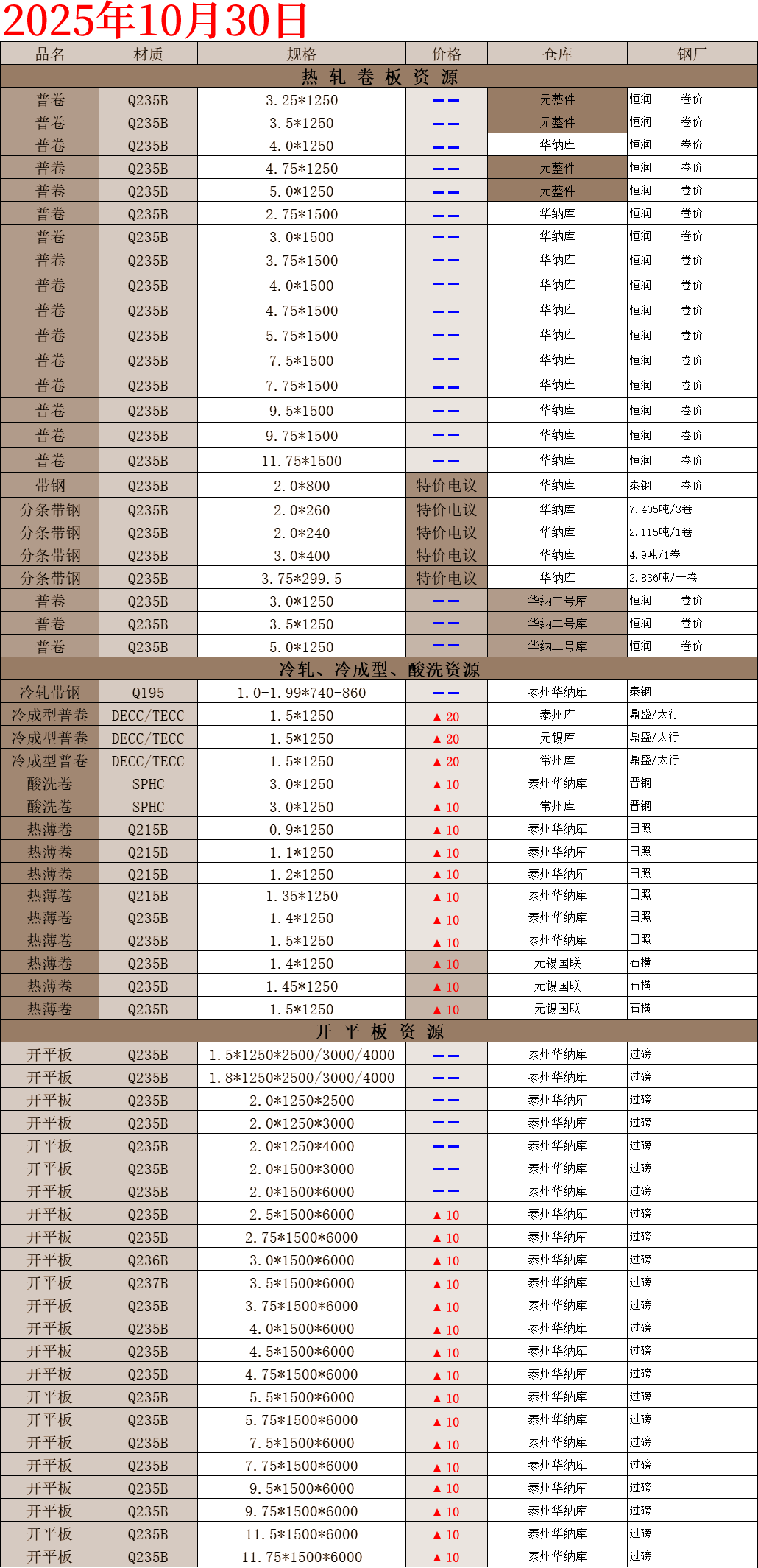 【钢互网报价】2025.10.30 星期四
