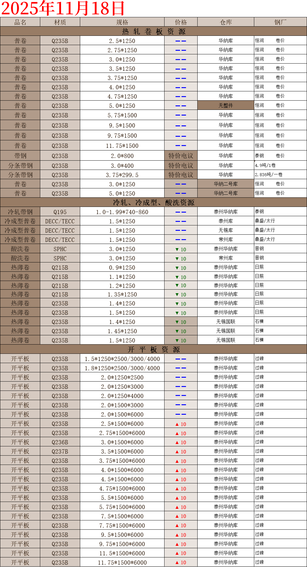 市场变化较快,实际成交价格以电询为准!报价说明 :以上卷板报价均为整件含开价,正常库存开平板出售+50需定开3米以上(包括3米)非整件+60,需定开2-3米非整件+70(包括2米),非整件小于1米-2米+80(包括1米),小于1米另计