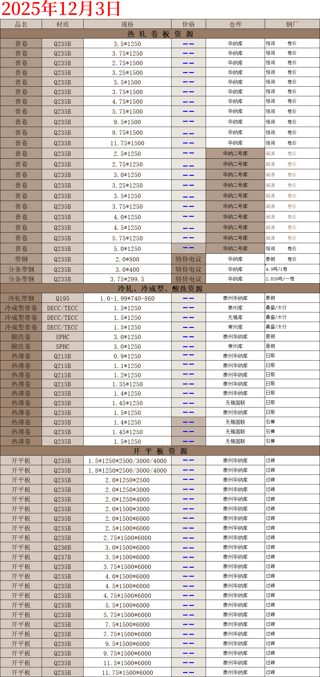 【钢互网报价】2025.12.3 星期三