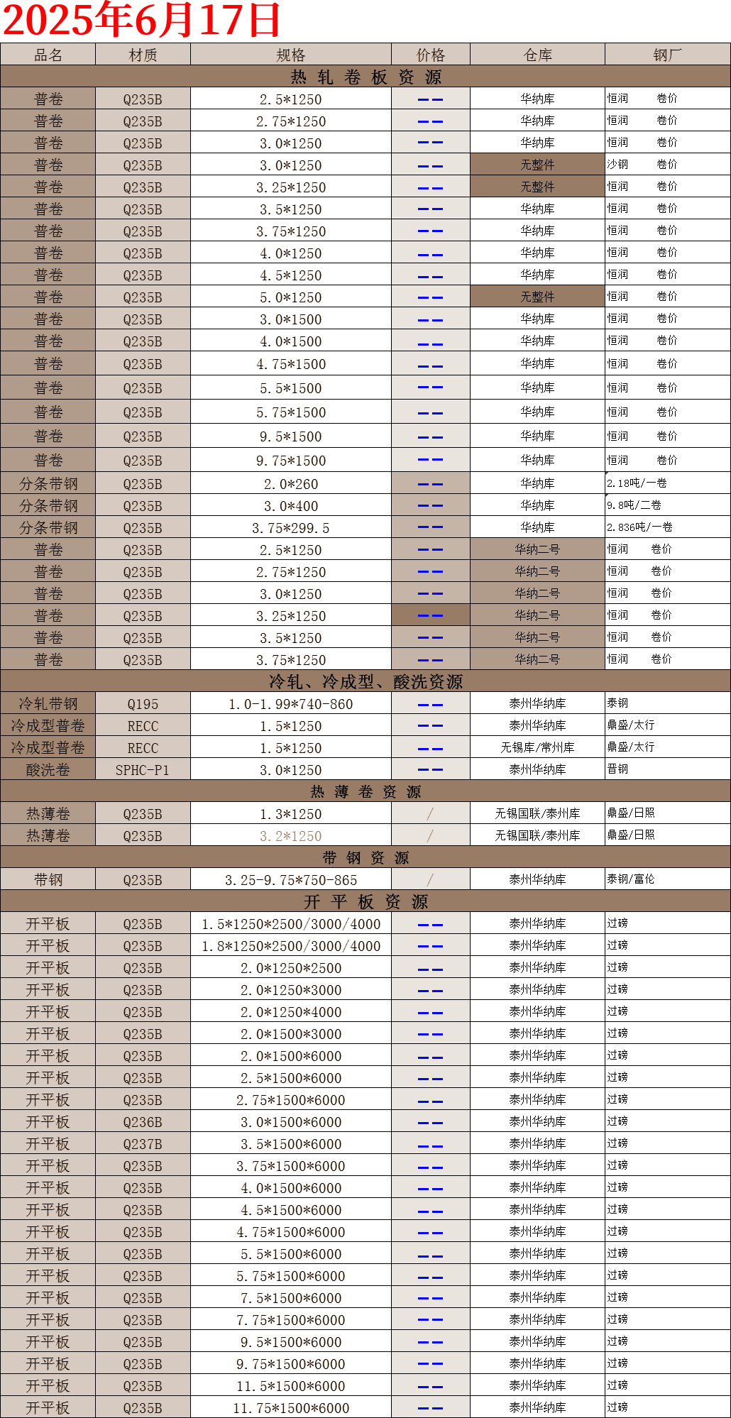 【钢互网报价】2025.6.17 星期二