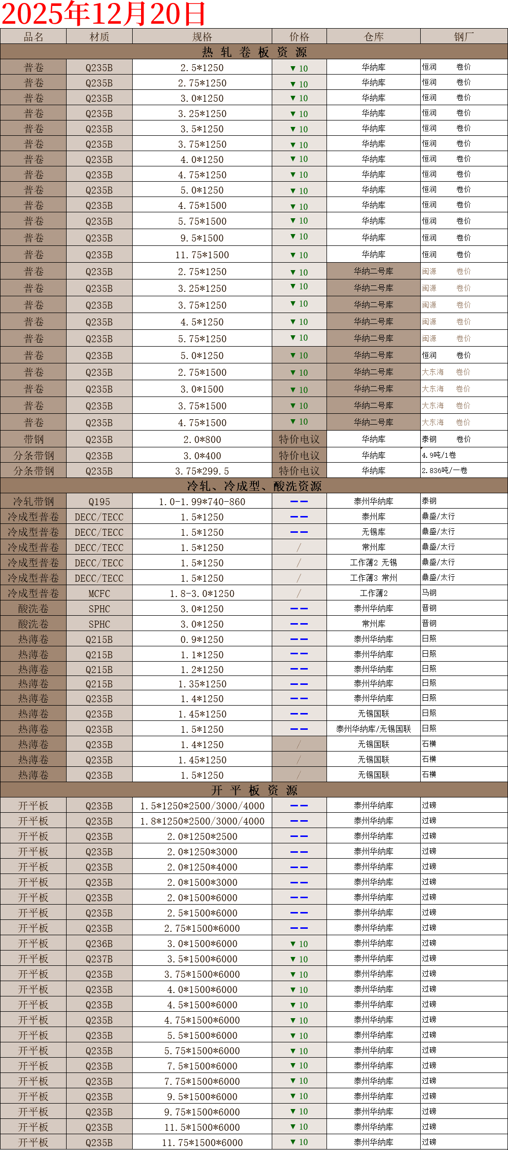 市场变化较快,实际成交价格以电询为准!报价说明 :以上卷板报价均为整件含开价,正常库存开平板出售+50需定开3米以上(包括3米)非整件+60,需定开2-3米非整件+70(包括2米),非整件小于1米-2米+80(包括1米),小于1米另计