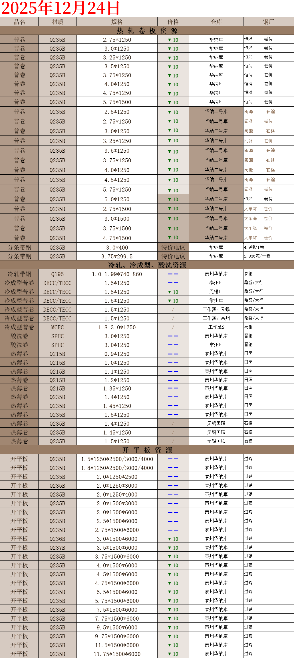 【钢互网报价】2025.12.24 星期三