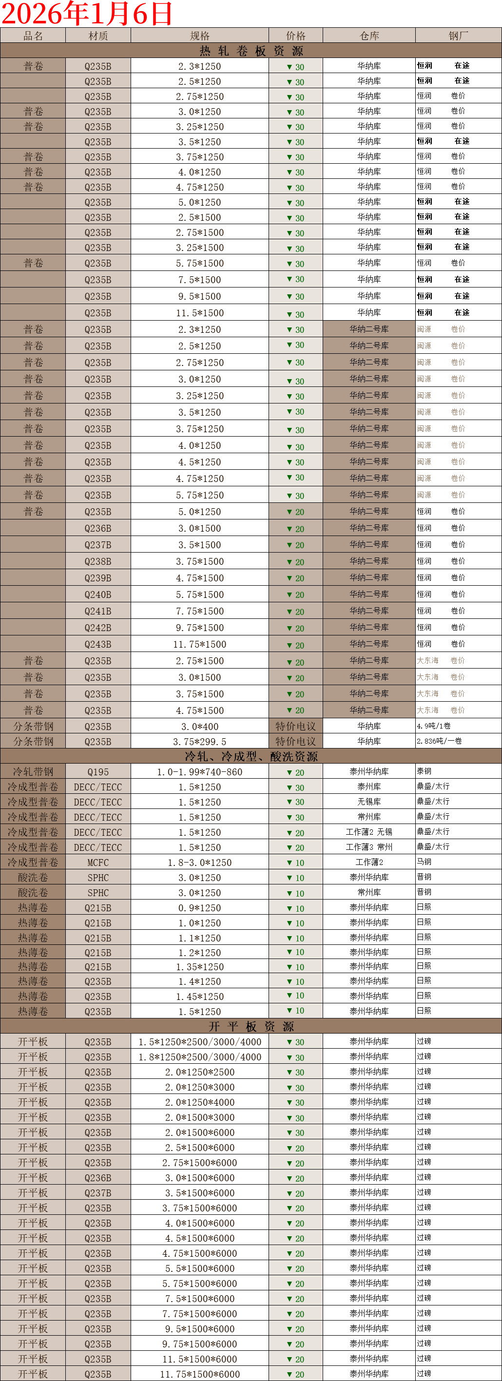 【钢互网报价】2026.1.6 星期二