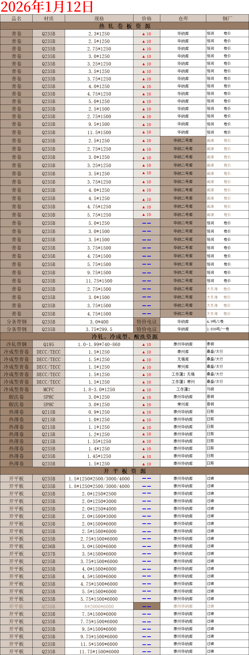 市场变化较快,实际成交价格以电询为准!报价说明 :以上卷板报价均为整件含开价,正常库存开平板出售+50需定开3米以上(包括3米)非整件+60,需定开2-3米非整件+70(包括2米),非整件小于1米-2米+80(包括1米),小于1米另计
