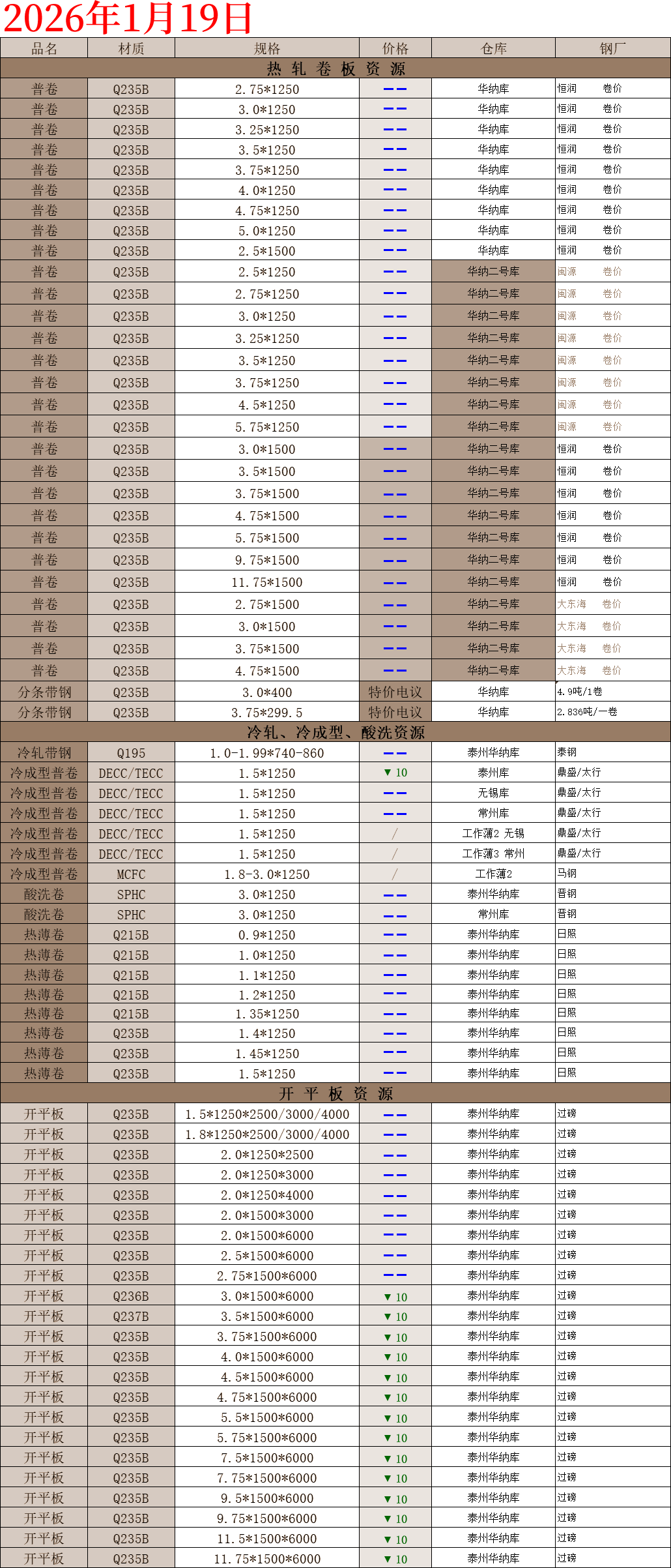 【钢互网报价】2026.1.19 星期一