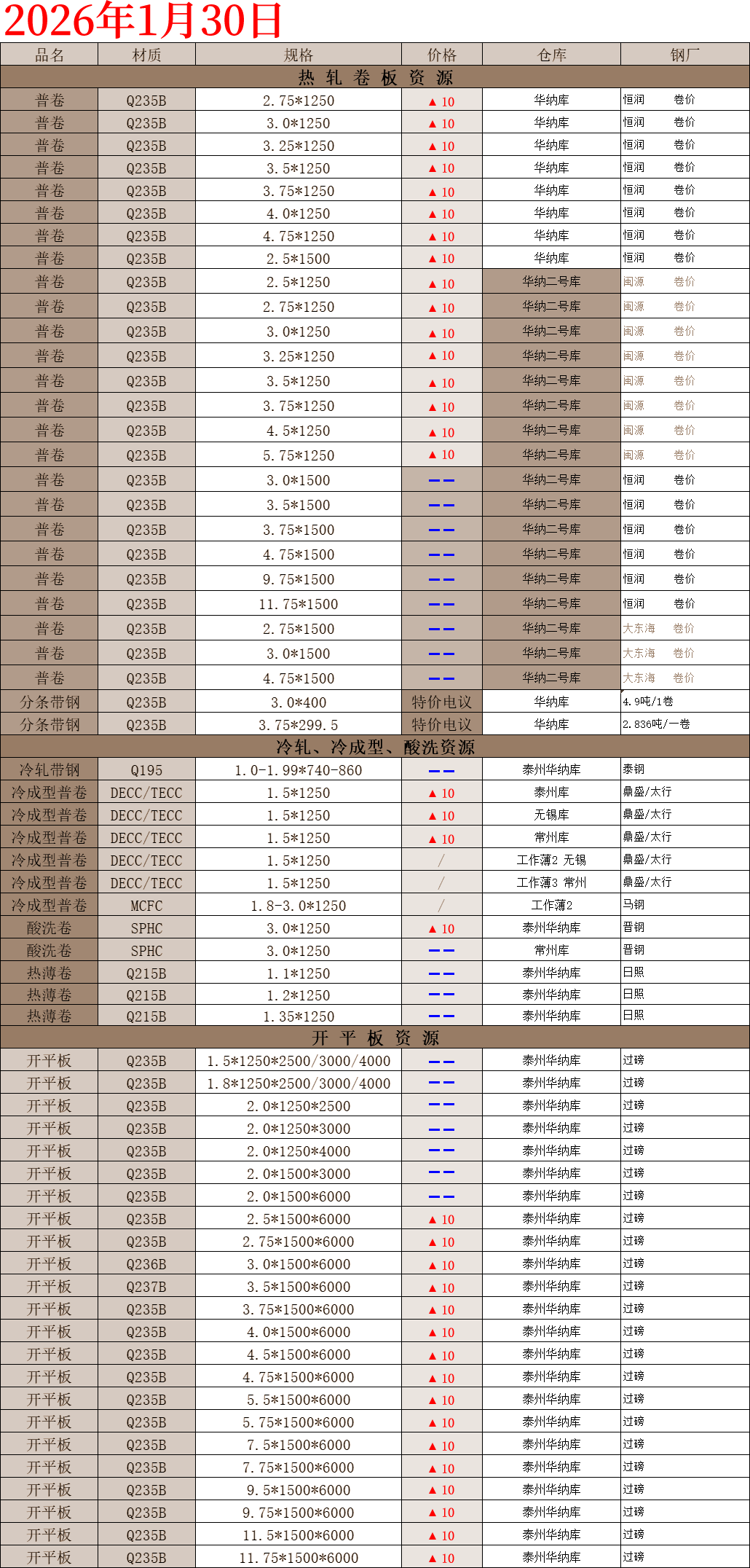 【钢互网报价】2026.1.30 星期五