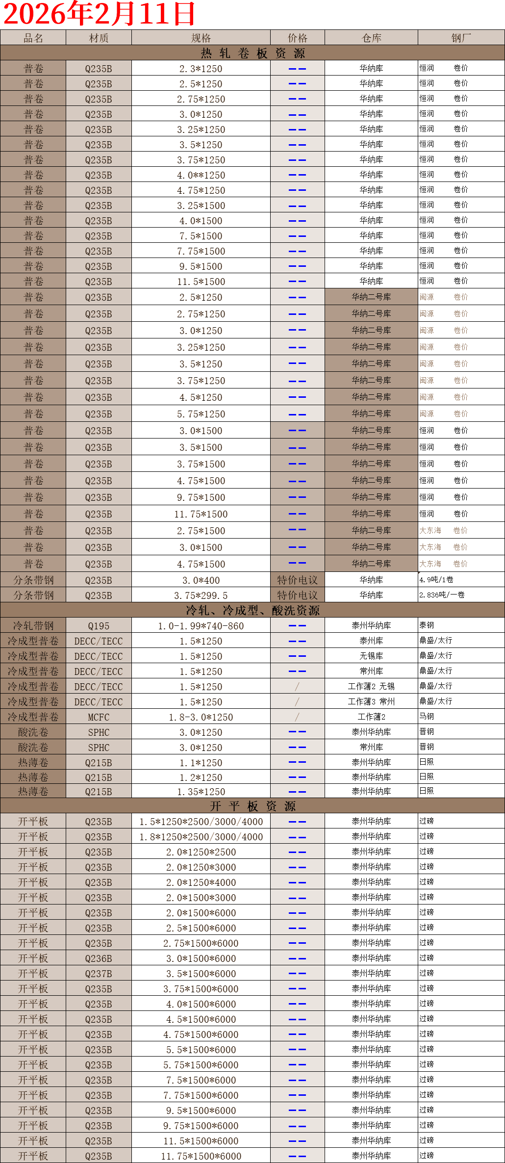 市场变化较快,实际成交价格以电询为准!报价说明 :以上卷板报价均为整件含开价,正常库存开平板出售+50需定开3米以上(包括3米)非整件+60,需定开2-3米非整件+70(包括2米),非整件小于1米-2米+80(包括1米),小于1米另计