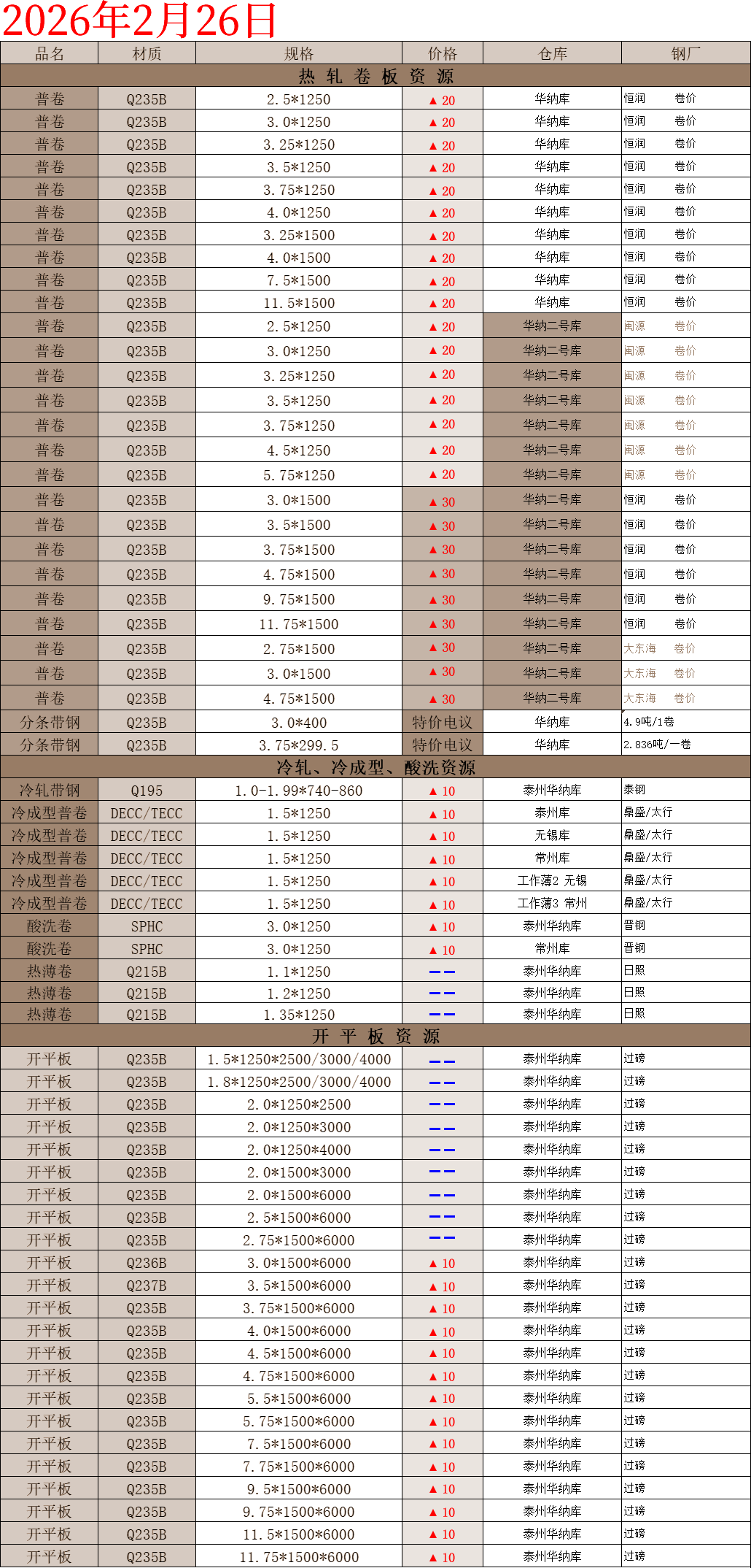 市场变化较快,实际成交价格以电询为准!报价说明 :以上卷板报价均为整件含开价,正常库存开平板出售+50需定开3米以上(包括3米)非整件+60,需定开2-3米非整件+70(包括2米),非整件小于1米-2米+80(包括1米),小于1米另计