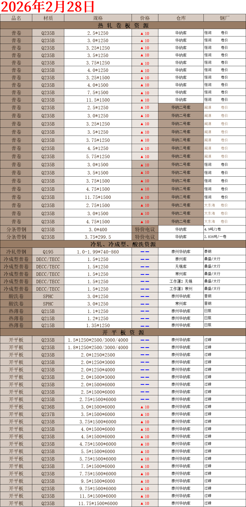 市场变化较快,实际成交价格以电询为准!报价说明 :以上卷板报价均为整件含开价,正常库存开平板出售+50需定开3米以上(包括3米)非整件+60,需定开2-3米非整件+70(包括2米),非整件小于1米-2米+80(包括1米),小于1米另计
