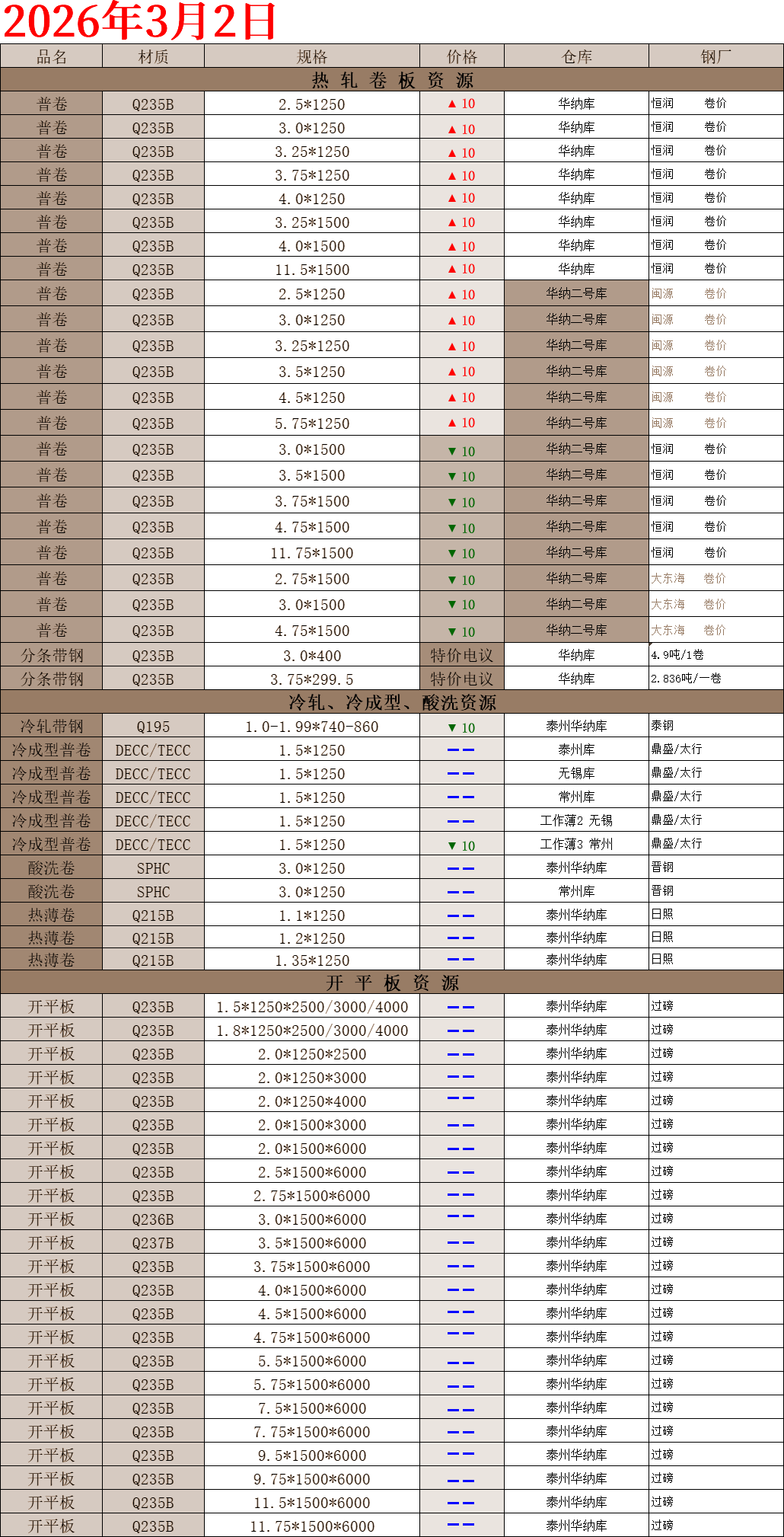 【钢互网报价】2026.03.02 星期一