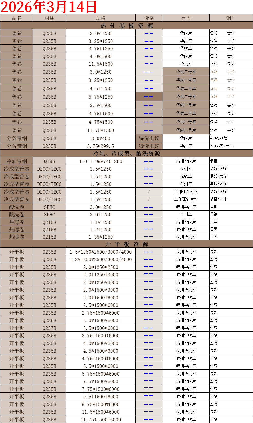 【钢互网报价】2026.03.14 星期六