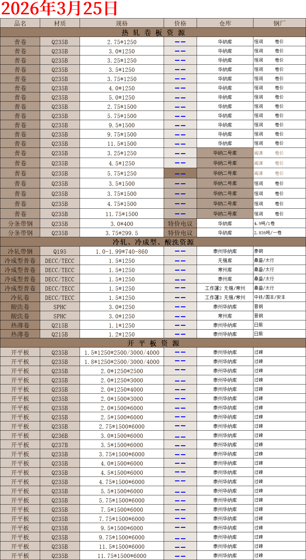 【钢互网报价】2026.03.25 星期三