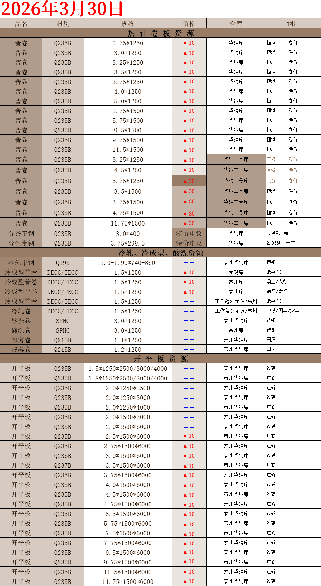 【钢互网报价】2026.03.30 星期一