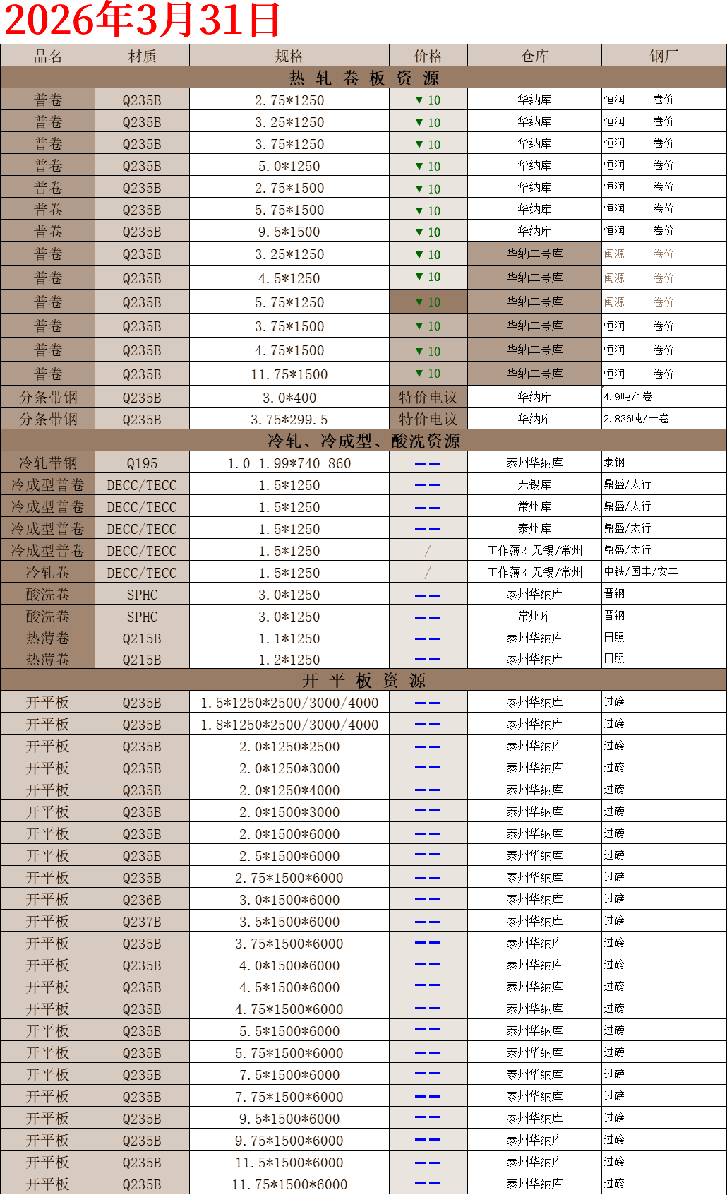 市场变化较快,实际成交价格以电询为准!报价说明 :以上卷板报价均为整件含开价,正常库存开平板出售+50需定开3米以上(包括3米)非整件+60,需定开2-3米非整件+70(包括2米),非整件小于1米-2米+80(包括1米),小于1米另计