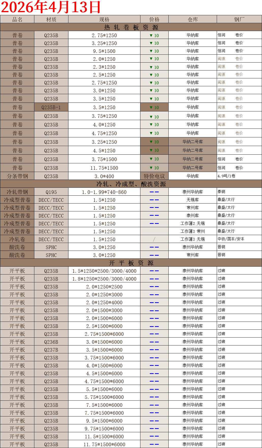 市场变化较快,实际成交价格以电询为准!报价说明 :以上卷板报价均为整件含开价,正常库存开平板出售+50需定开3米以上(包括3米)非整件+60,需定开2-3米非整件+70(包括2米),非整件小于1米-2米+80(包括1米),小于1米另计
